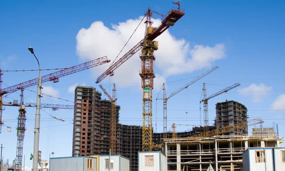 Kule vinç ve onu sökmeye gelen mobil vinç
