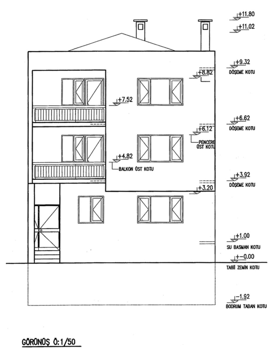 - Döşeme, pencere denizlik vs.. Kotlar,-yol ve tretuvar kotu,